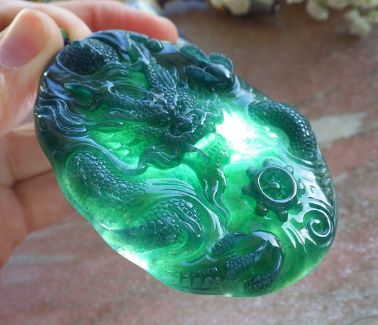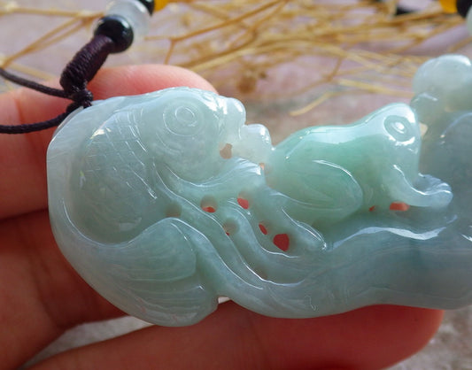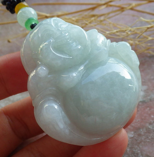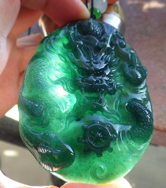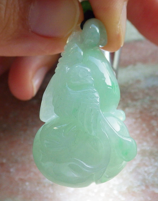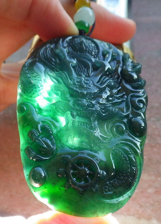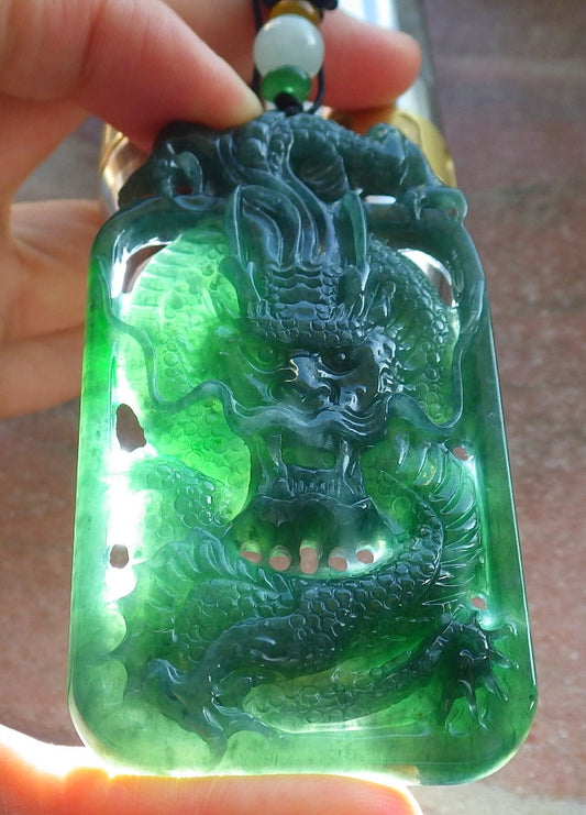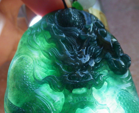 Atestita Glacia Verda Birmo 100% Natura A Jadejadeito Pendanta Drako-Mona Monero-Koliero 生意兴隆 640116 TN