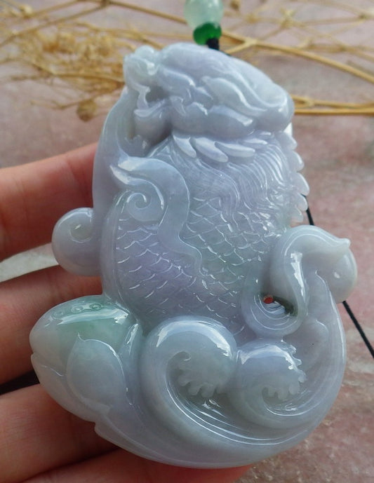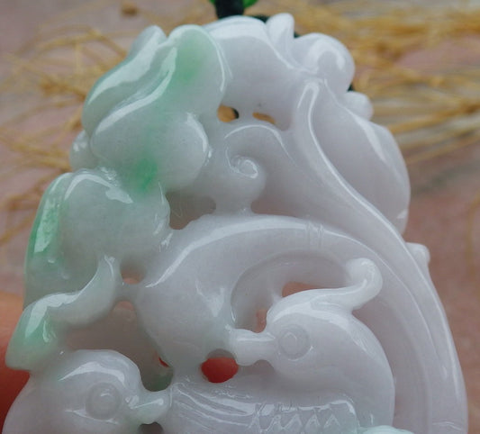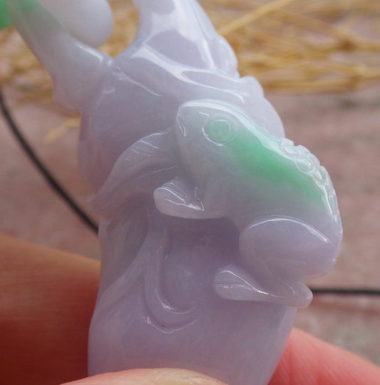 Atestita Verda Lavenda Birmo 100% Natura A Jadejadeito Pendanta Drako-Fiŝo Lotusa Flora Koliero 龙鱼 639305 TN