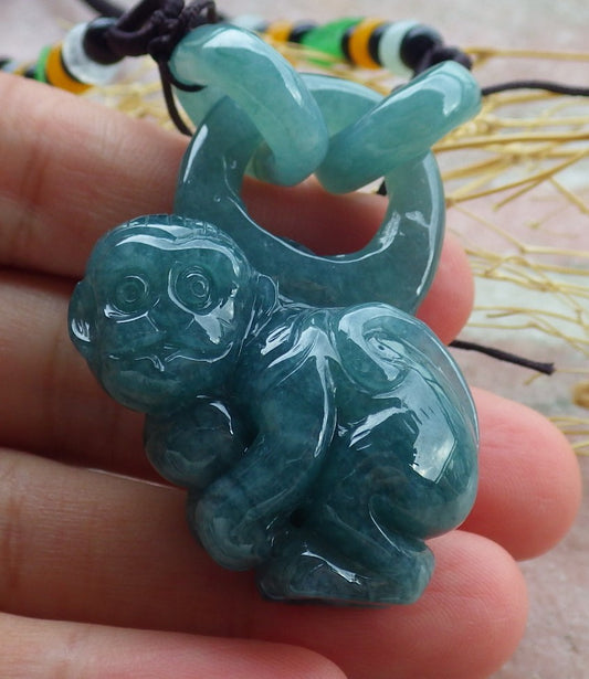 Atestita Glacia Verda Birmo 100% Natura A Jadejadeito Pendilo Simio Persiko W Ringo 猴子 639352 TN