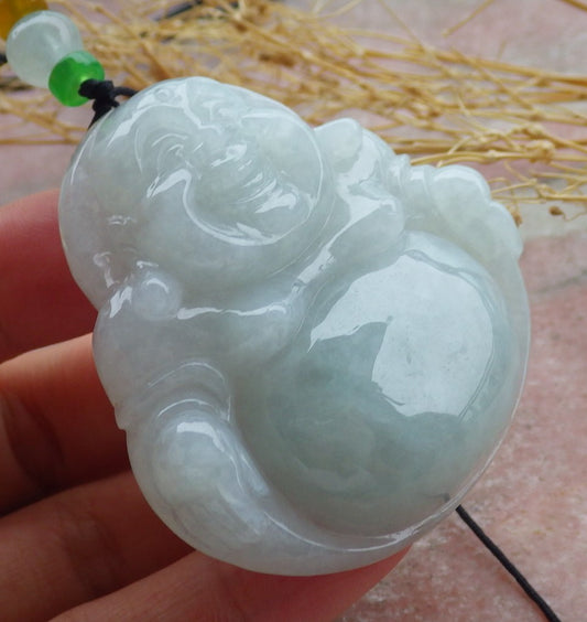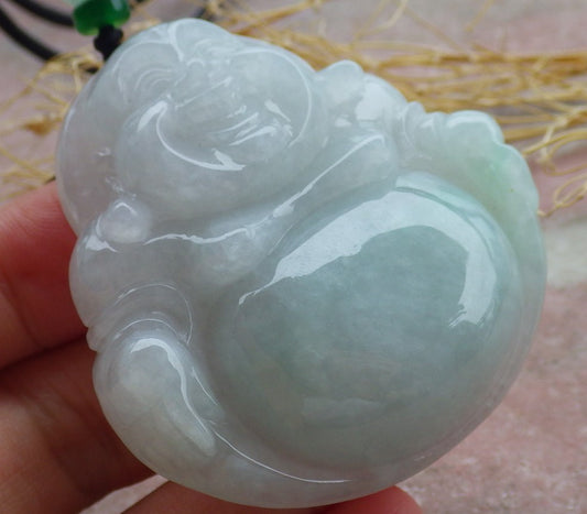 Atestita Glacia Verda Birmo 100% Natura A Jadejadeita pendanta Feliĉa Budho Dio-Koliero 开心佛 639505 TN