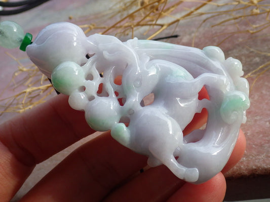 Atestita Verda Pala Lavenda Birmo 100% Natura A Jadejadeito Pendumaĵo Rana Bufo Kukurbo-Koliero 招财蟾 639431 TN