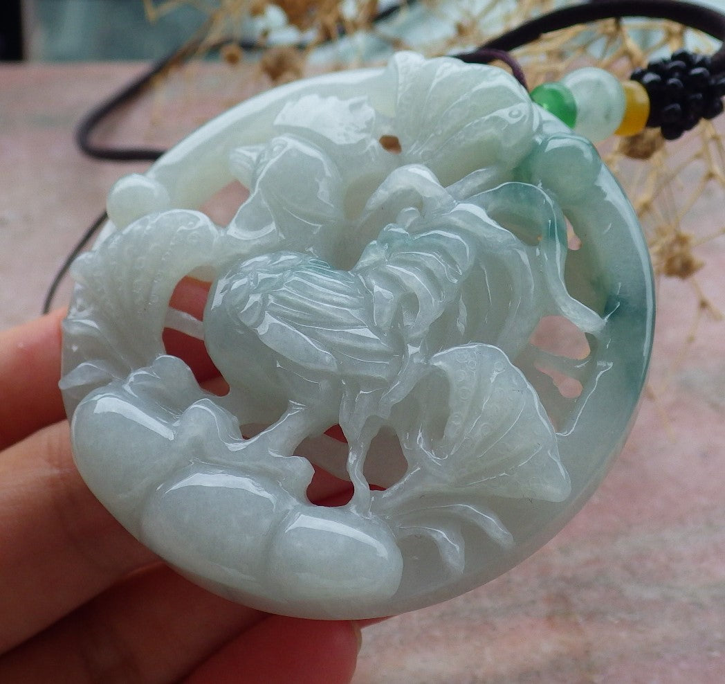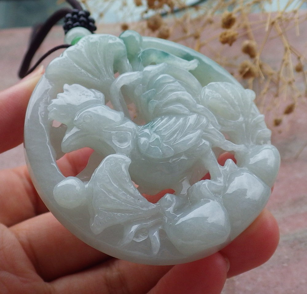 Atestita Verda Birmo 100% Natura A Jadejadeito Pendanta Fenikso Koko Ronda Koliero 招财鸡 637372 TN