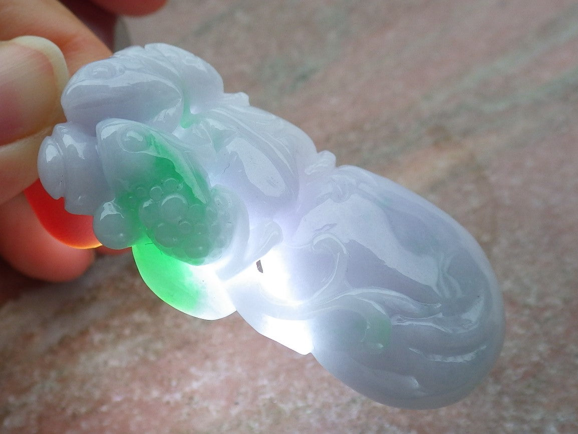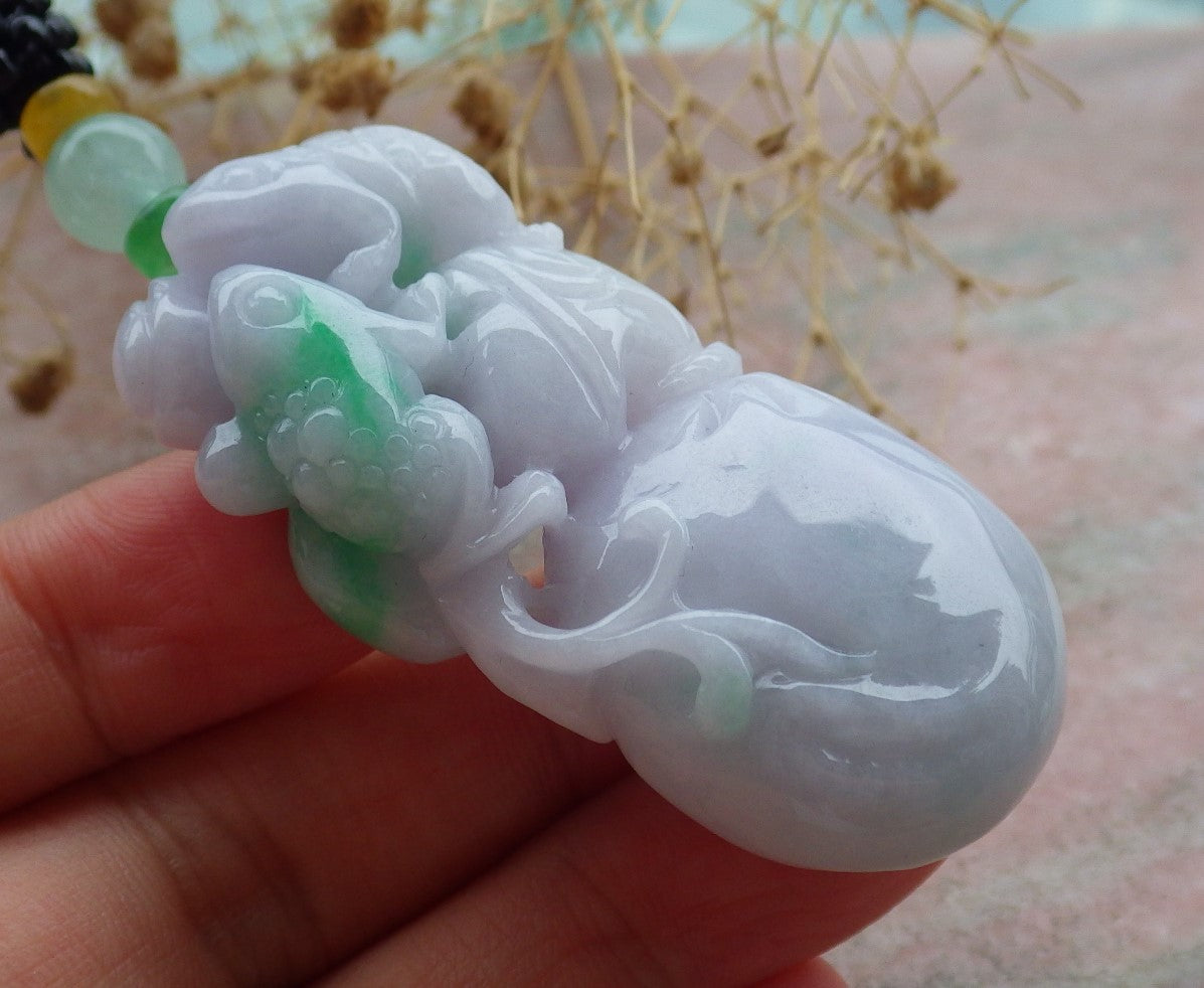 Atestita Verda Pala Lavenda Birmo 100% Natura Jado Jadeito Pendumaĵo Rano Bufo Mona Sako Yuan Bao Koliero 招财蟾 637432 TN