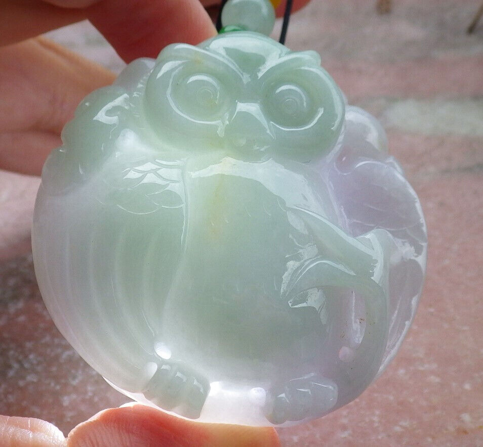 Atestita Verda Pala Lavenda Birmo 100% Natura A Jadejadeita Pendanta Strigo Ruyi-Koliero 猫头鹰 632551 TN