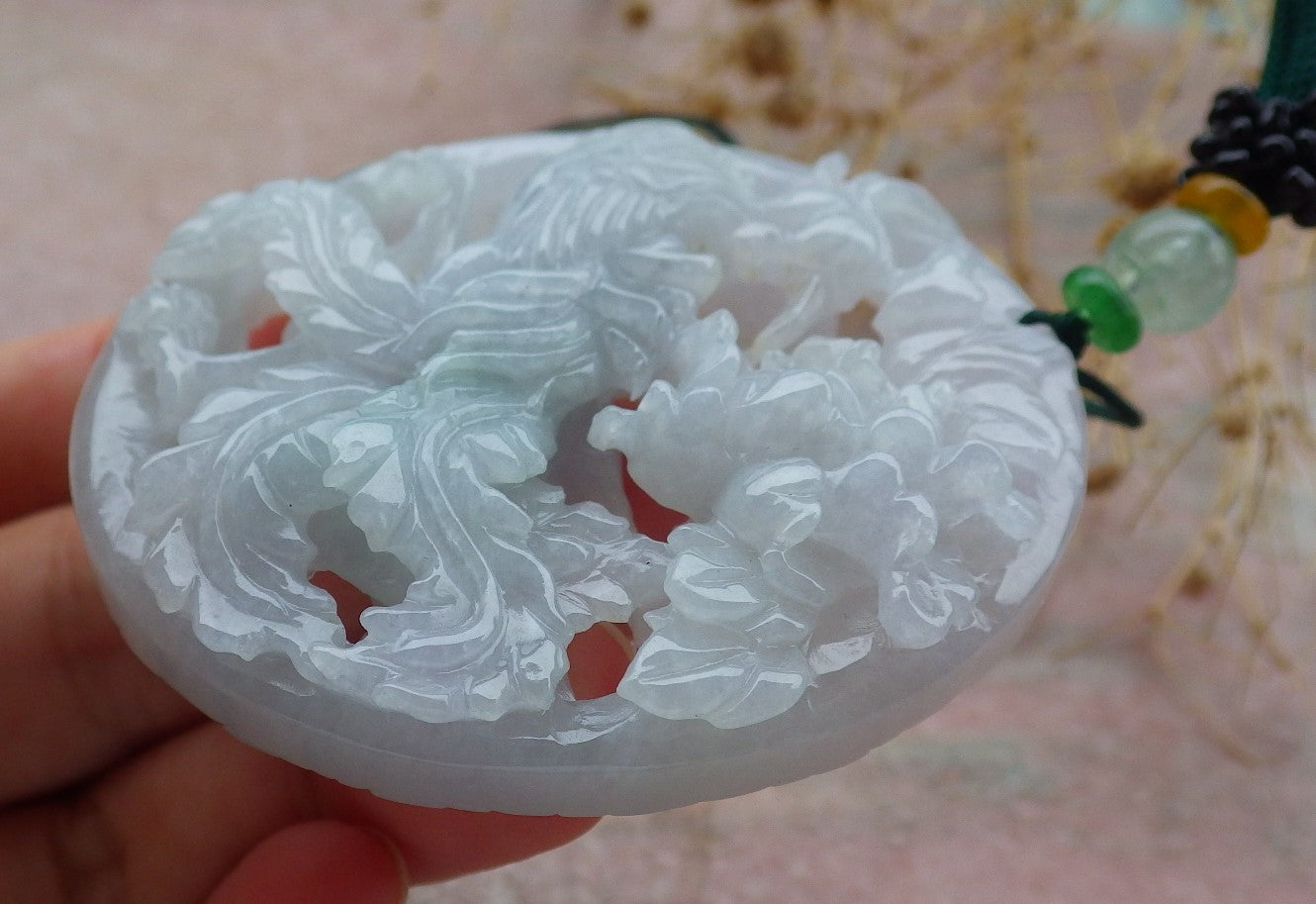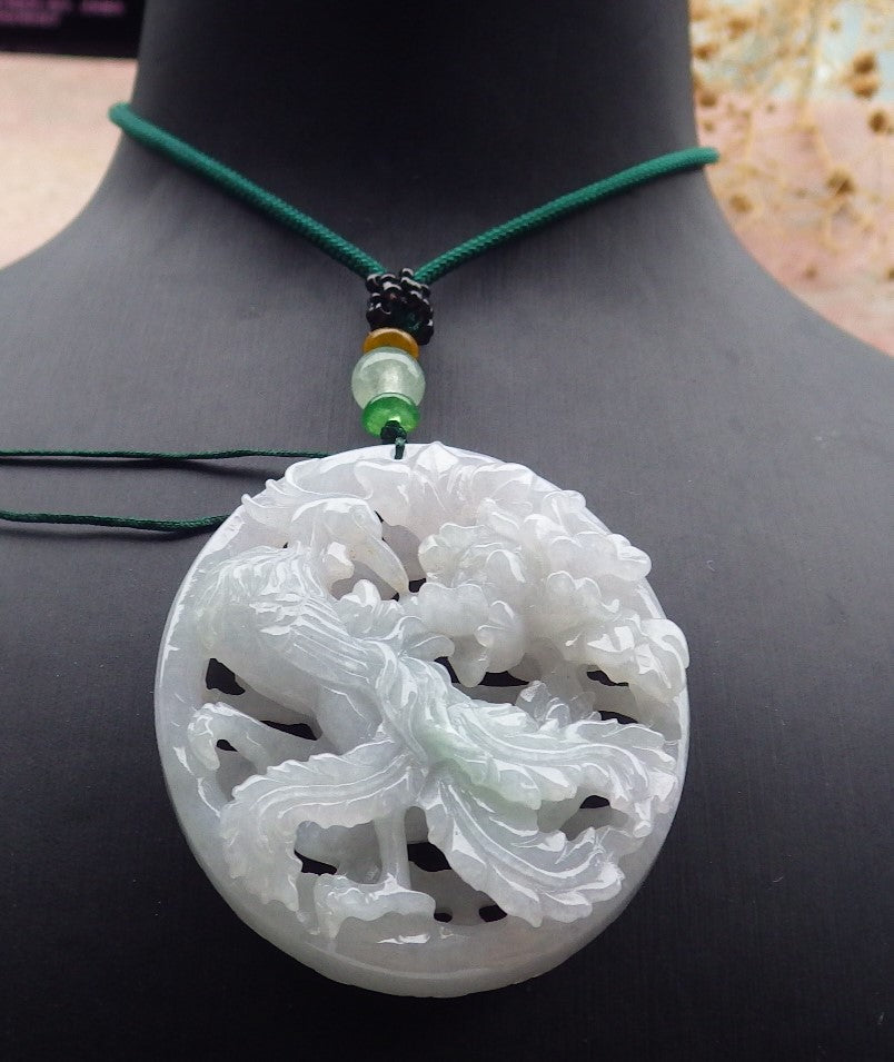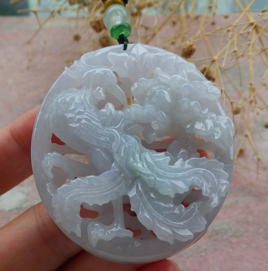 Atestita Verda Pala Lavenda Birmo 100% Natura A Jadejadeita Pendanta Fenikso-Flora Koliero 凤凰 637477 TN