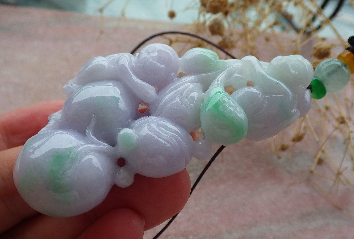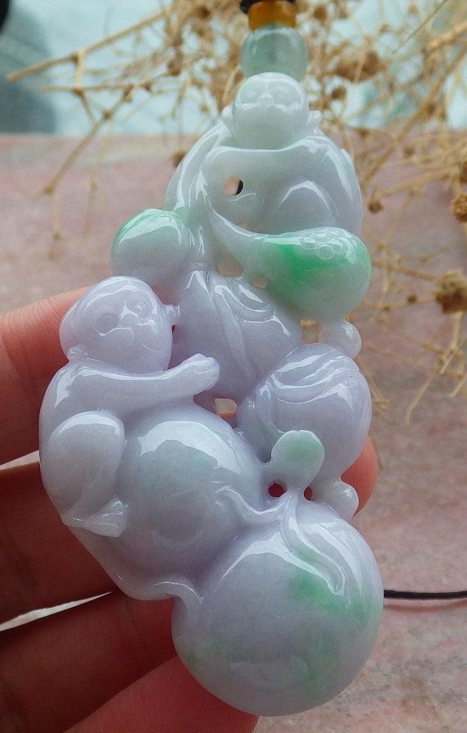 Atestita Verda Pale Pala Lavenda Birmo 100% Natura Jadeja Pendanta Simio-Persika Kukurbo-Koliero 猴子 637407 TN