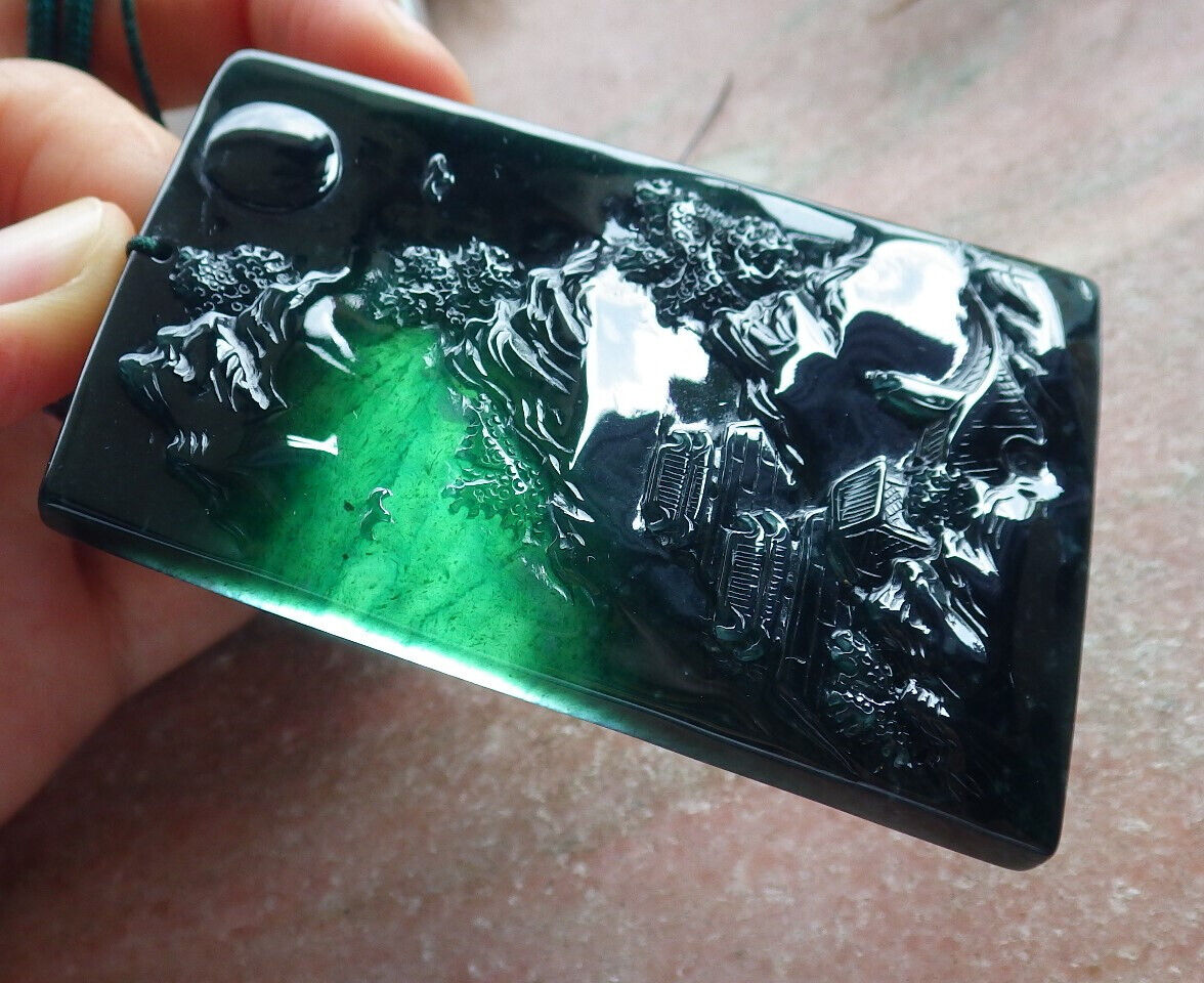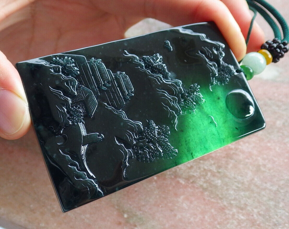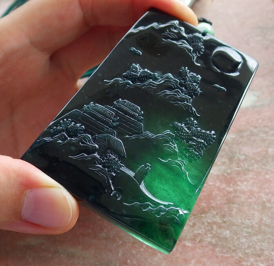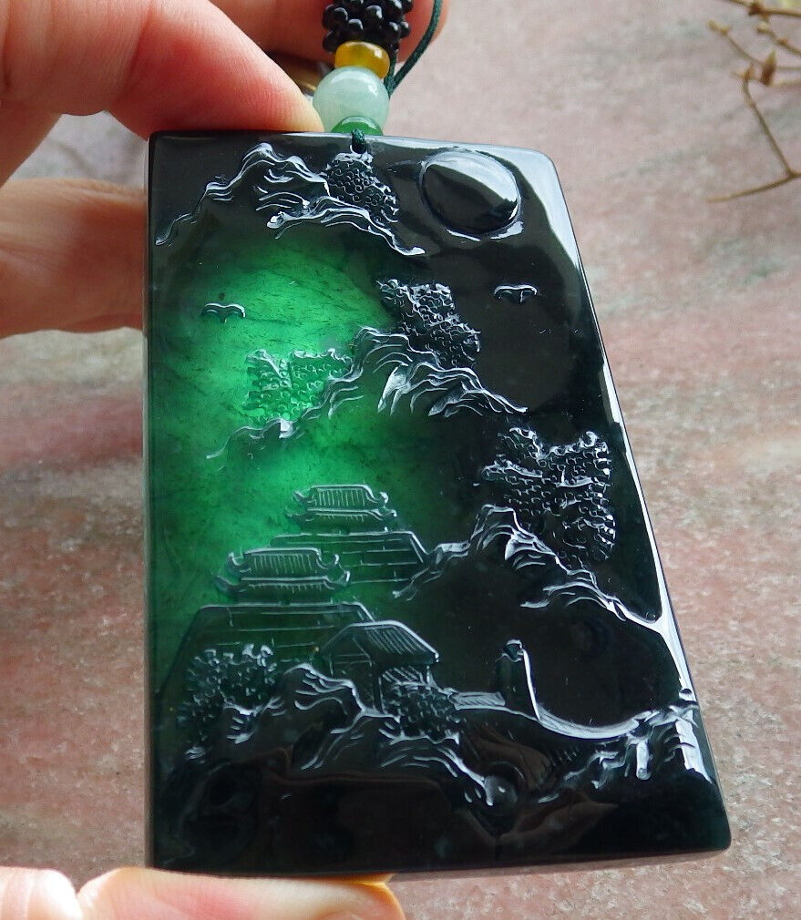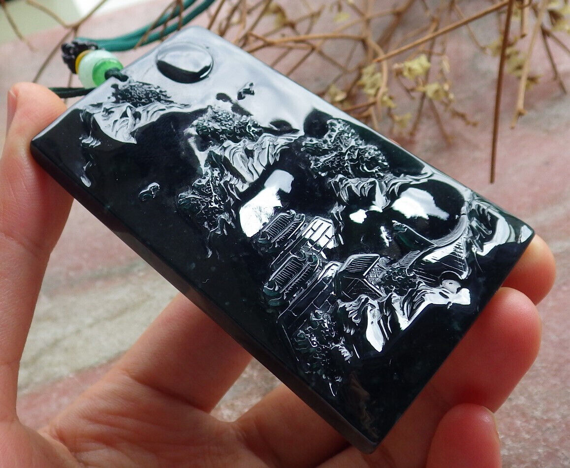 Atestita Glacia Blua Akvo Birmo 100% Natura A Jadejadeito Pendanta Pejzaĝa Pentrado Arba Koliero 山水画 634473 TN
