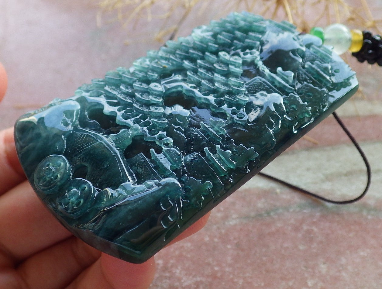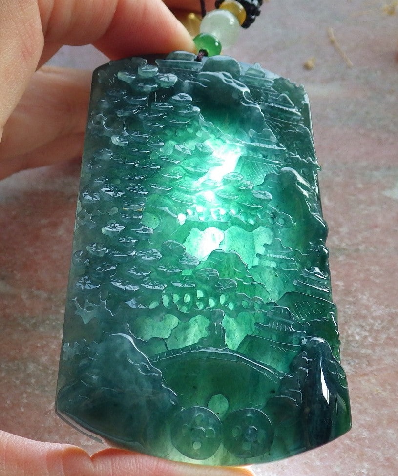 Atestita Glacia Blua Akvo Birmo 100% Natura A Jadejadeito Pendilo Pejzaĝa Pentrado Arba Koliero 山水画 637800 TN