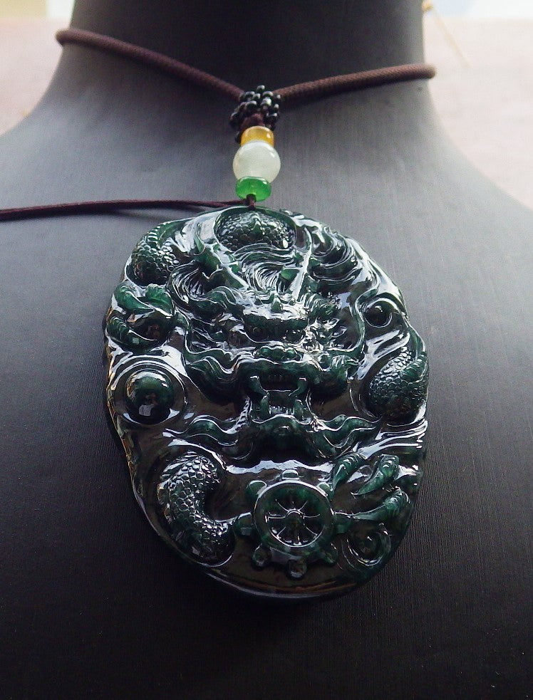 Atestita Glacia Blua Akvo Verda Birmo 100% Natura A Jado-jadeita Pendanta Drako-Perlo-Koliero 生意兴隆 637809 TN