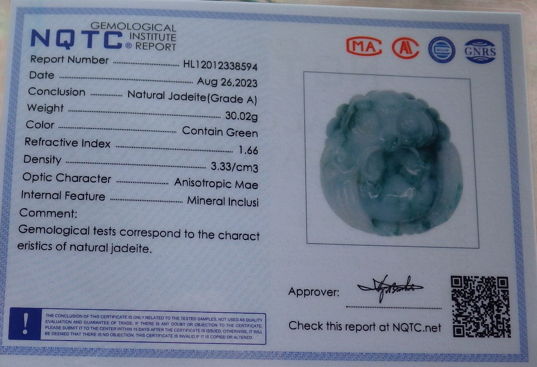Certified Green Burma 100% Natural A Jade jadeite Pendant Owl Ruyi Necklace 猫头鹰 634530