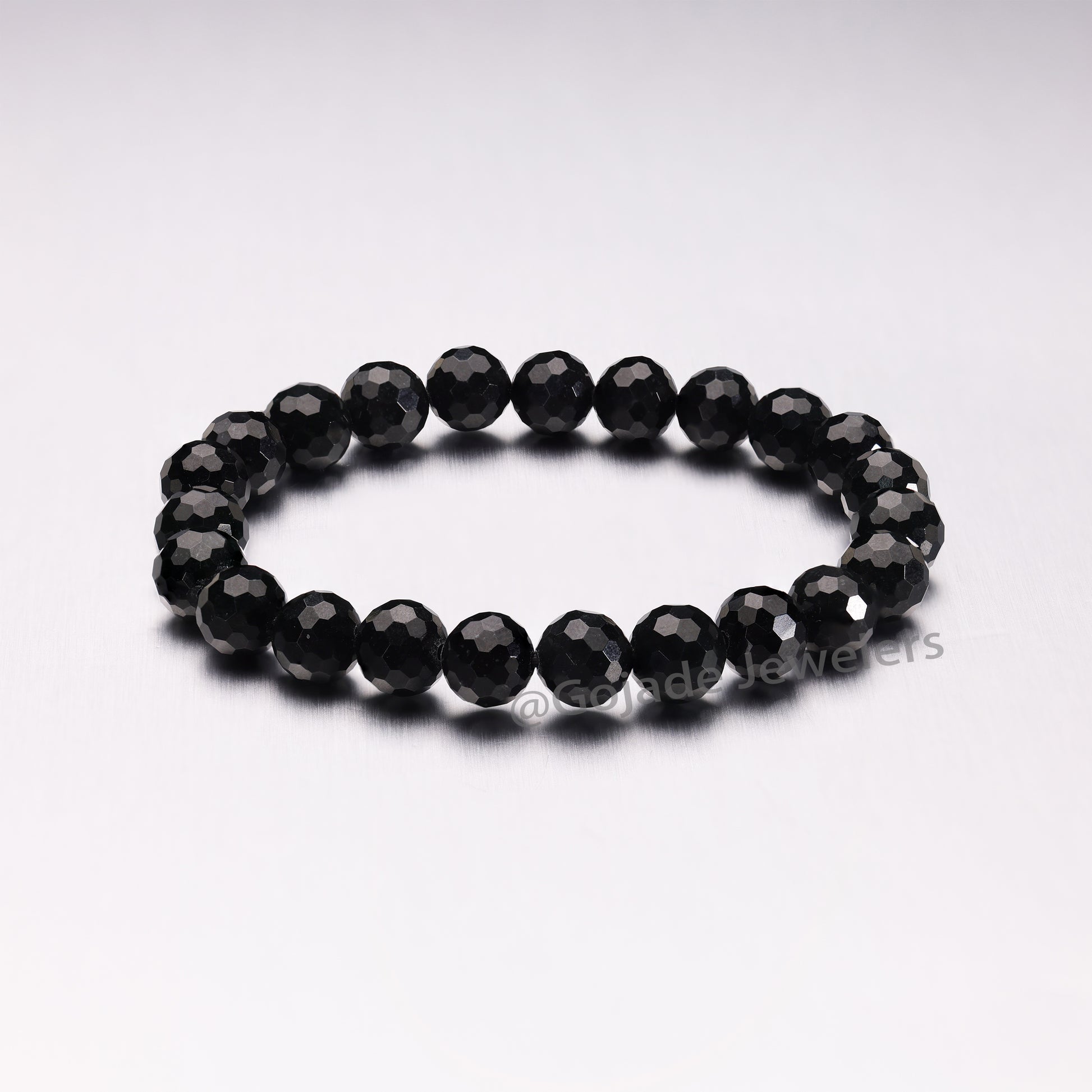 The 100% Natural Black Diamond Cut Bead Jade Jadeite Bracelet b17