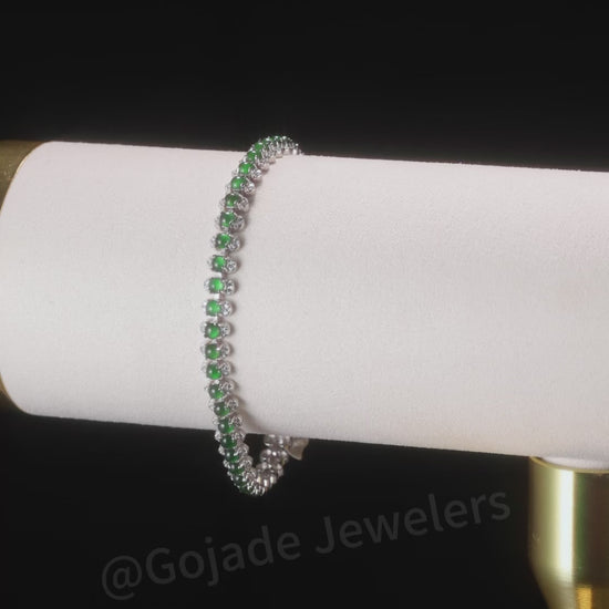 The Green jadeiet Bracelet S925 Silver With Burma Natural jade with Certificate